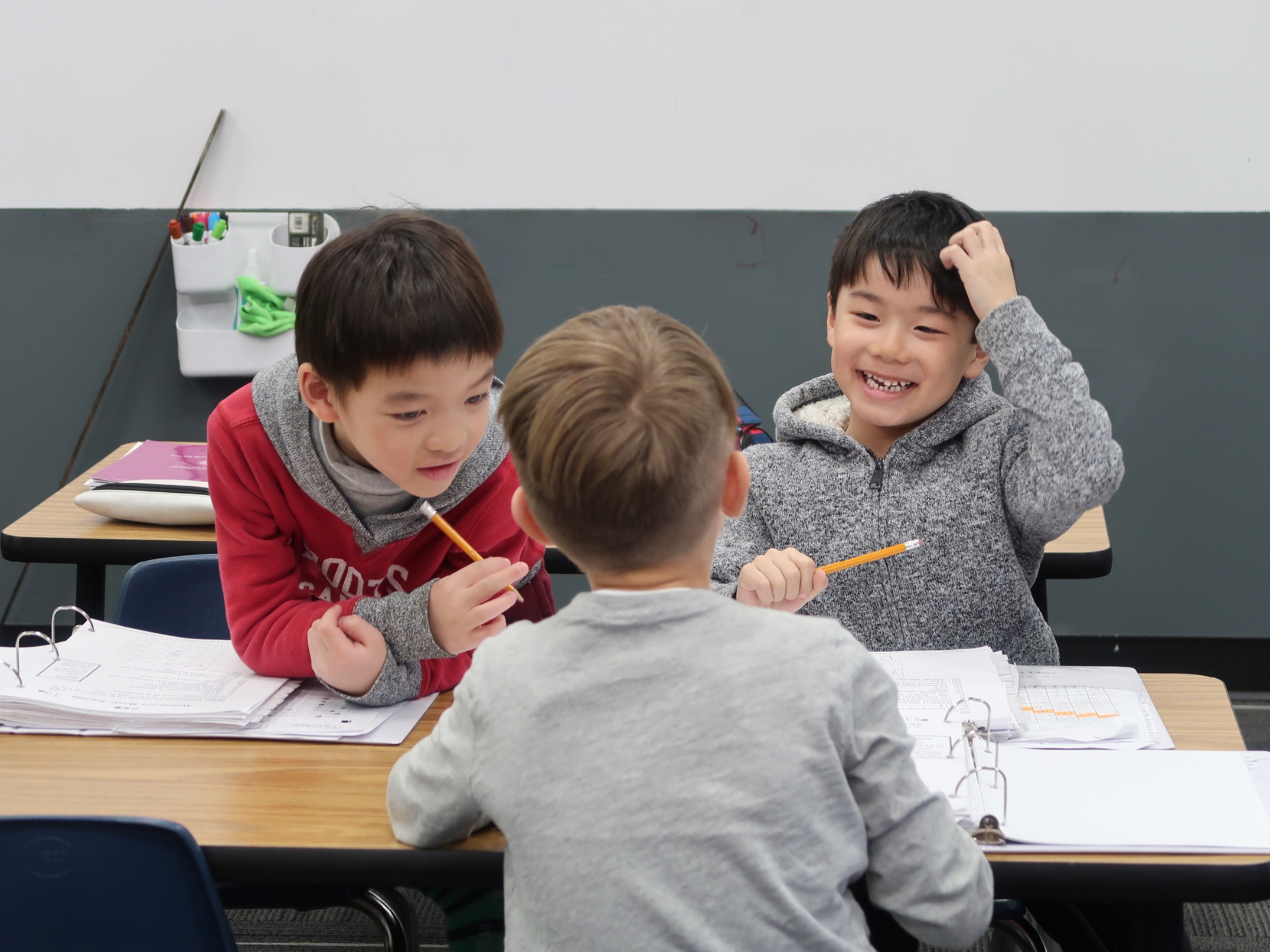 The one-hour and 15-minute classes are fast-paced with many different activities for the kindergarten child. Students develop their 2-D and 3-D spatial sense with activities at the beginning of each class, followed by developing an understanding of how numbers work together in patterns. A hands-on practical approach to numeracy and geometry, combined with some memory work, provides for the foundation to problem solving. The problem solving is focused on language, patterning and reasoning to form the foundation to the logical thinking needed for later grades.